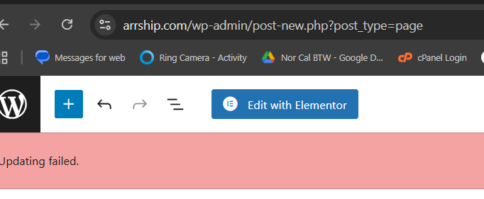 We’ve also found the ability to use control s to save, but that results in the conflicting messaging of “saved” in the Save draft on the top right as well as another Updating failed message on the orange error message. Preview of the page results in 404 errors, and the page is not included in the list of pages that exist.
